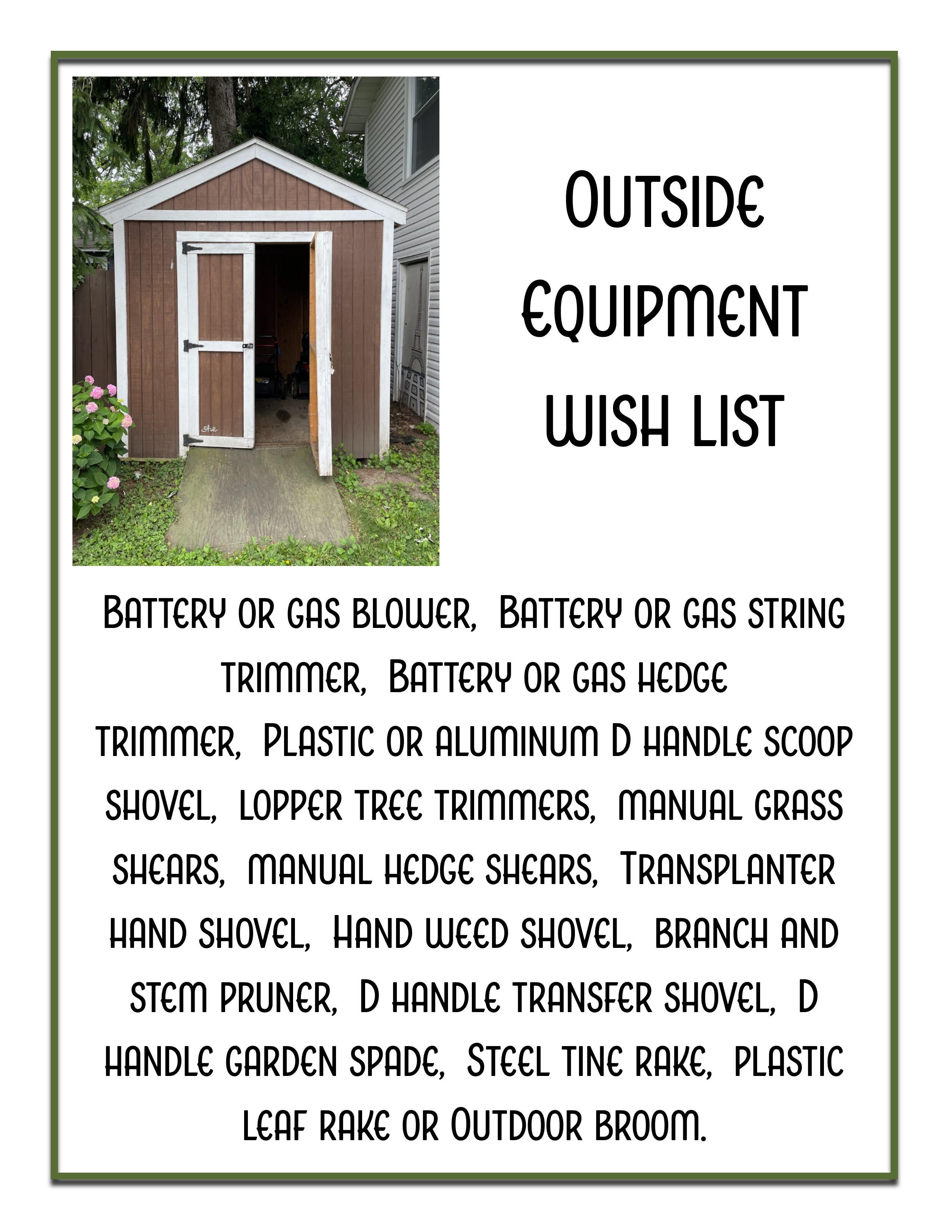 For our maintenance and grounds personnel to keep our campus looking great we’ve created an Outdoor Equipment Wish List. If you or someone you know can donate any of the following, we’d be immensely grateful. If you have any questions and would like to donate, please reach out to Dani at 716-438-2273. Click here for the list of items in need.